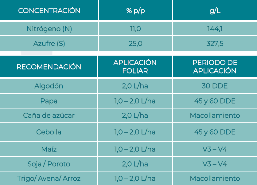 Utilizar +S es un fertilizante foliar fluido, fuente de nitrógeno y azufre para